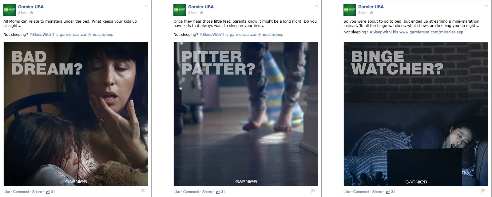Garnier, and many other beauty brands for that matter, will often rely on vanity and the fear of aging to motivate you to try their products. For the launch of their new Miracle Sleeping Cream, we chose to go a different route. Instead of featuring perfect looking overly re-touched celebrities or harping on the latest molecular technology found in the vast corners of plant life, we decided to turn to real life. The result was a minute long Anthem created for all the woman out there who aren't getting enough in bed. Many could relate.